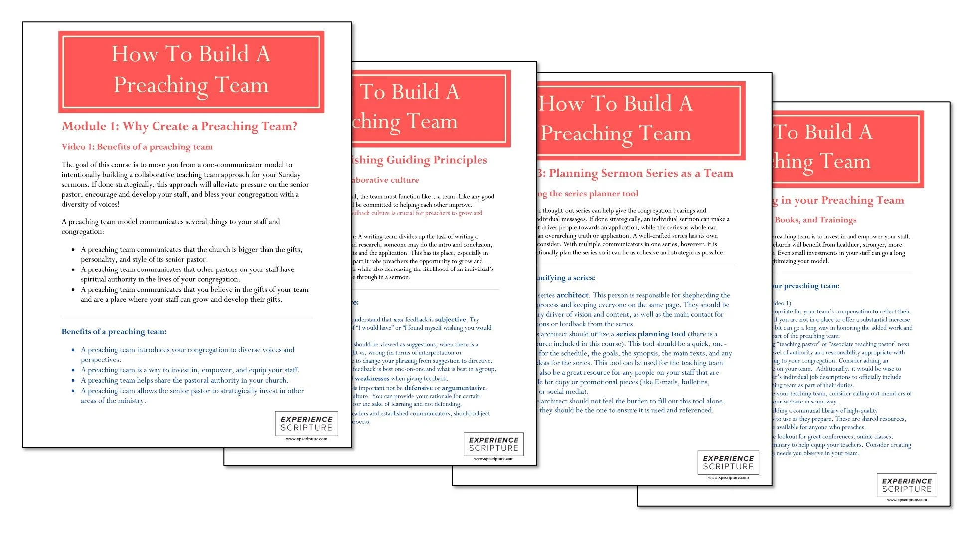 How To Build A Preaching Team is an online masterclass designed to give you the tools to intentionally build a collaborative teaching team approach for your Sunday sermons. If done strategically, this approach will alleviate pressure on the senior pastor, encourage and develop your staff, and bless your congregation with a diversity of voices! Taught by teaching pastor Andy Klenke, this course will cover some of his learnings and best practices.